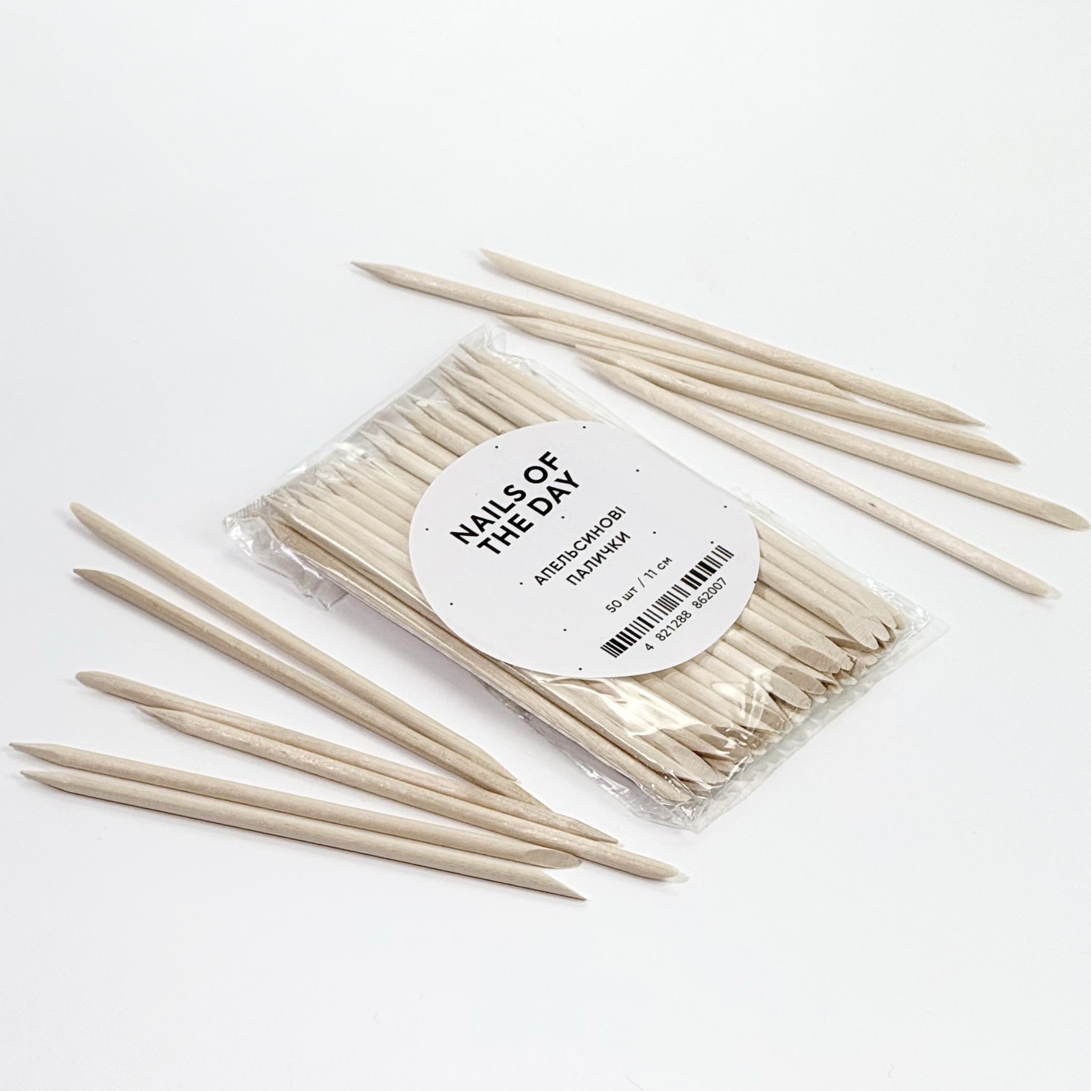 NAILSOFTHEDAY apelsini pulgad, 11 cm — asendamatu tööriist küünenahkade ettevaatlikuks tagasilükkamiseks ja küüneplaadi puhastamiseks. Komplektis 50 naturaalset apelsinipuust pulka, mis on pehme ega kahjusta küünt. Sobib ideaalselt nii koduseks kui professionaalseks maniküüriks.