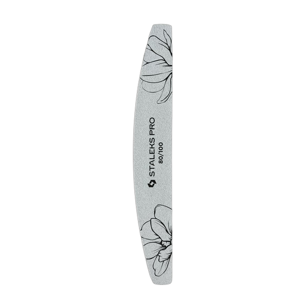 Пилка полумесяц Сталекс устойчива к износу и надолго сохраняет рабочие характеристики. Помимо высококачественного абразива предусмотрено специальное покрытие, препятствующее забиванию поверхности органической пылью. Внутри — тонкий пенный слой, снижающий давление на ногтевую пластину и предотвращающий травмирование. В комплекте 25 штук — запаса хватит надолго как профессиональному мастеру, так и обычному пользователю. Минеральная пилочка для ногтей Сталекс Про EXPERT 40 NFE-40-80/100-25 — особенности:минеральная;двусторонняя;форма полумесяц;абразив 80/100 грит;деликатное воздействие;пенная прослойка;гибкая пластиковая основа;одноразовое использование;размер — 162 х 25 х 4 мм;в упаковке 25 штук.Как используется Staleks Pro пилка полумесяц EXPERT 40 80/100 грит:Изогнутая сторона предназначена для обработки кутикулы и линий опила.Прямая — для придания формы свободному краю.Аккуратно обработайте свободный край пилочкой и сформируйте желаемую форму ногтевой пластины.