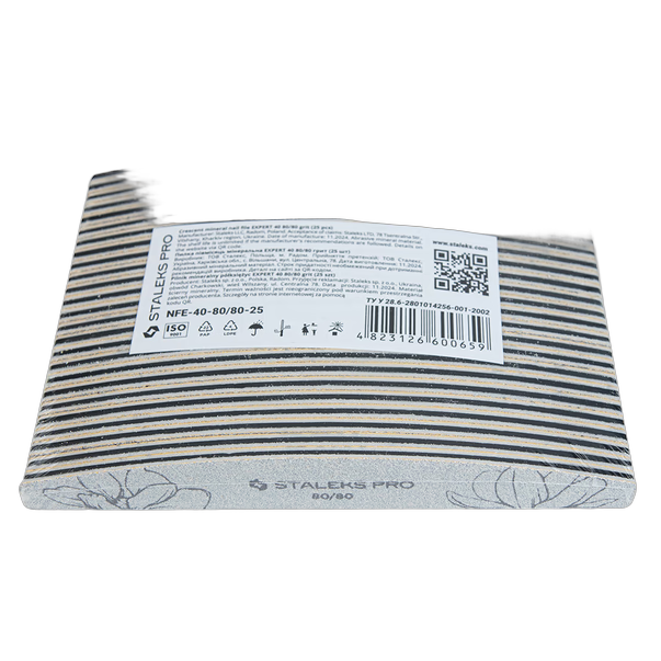 STALEKS PRO EXPERT 40 mineraalne kuuneviil 80/80 gritti poolkuu kujuga on uhekordne professionaalne instrument kunstkuunte tootlemiseks. Jame 80 gritti abrasiiv molmal poolel teeb sellest ideaalse vahendi katte eemaldamiseks, kunstkuunte pikkuse viilimiseks ning paksude geeli- voi akruulkihtide eemaldamiseks.