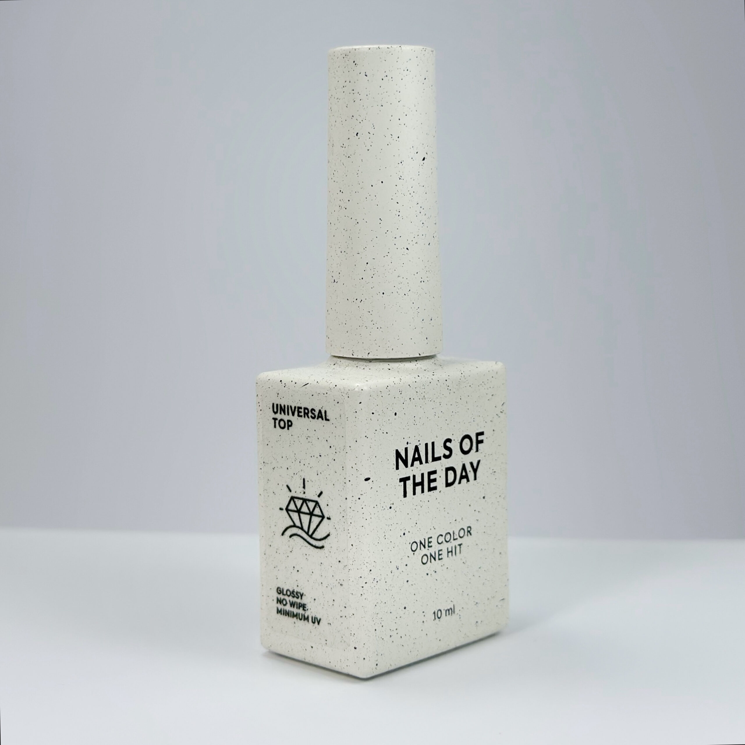 NAILSOFTHEDAY Universal Top on läikiv pealispind ilma kleepuva kihita ja minimaalsete UV-filtritega. Sama topp, mis ei teki sinikaid! VALGUSTUNDLIK TOODE — valgustundlik materjal, on kõrge tundlikkusega aknast tuleva päikesevalguse, toa ja laua tööala lampide valguse suhtes. Spetsiaalne NAILSOFTHEDAY koostis on ideaalne valik, eriti päikeselisteks päevadeks. Tänu kaasaegsele valemile sobib see ideaalselt nii heledate kui ka tumedate toonide jaoks. Läbipaistev läikiv viimistlus, mis on loodud neile, kes hindavad värvide puhtust detailides. See ei sinata tumedaid toone ega kollaseks heledaid, jättes need selliseks, nagu need olid ette nähtud. Kandub suurepäraselt õhukese kihina, ei tekita liigset paksust ja säilitab pikka aega peeglitaolise läike. LÄIKIV / EI PUHISTA / MINIMAALNE UV / vedel konsistents Universaalse topi eelised: