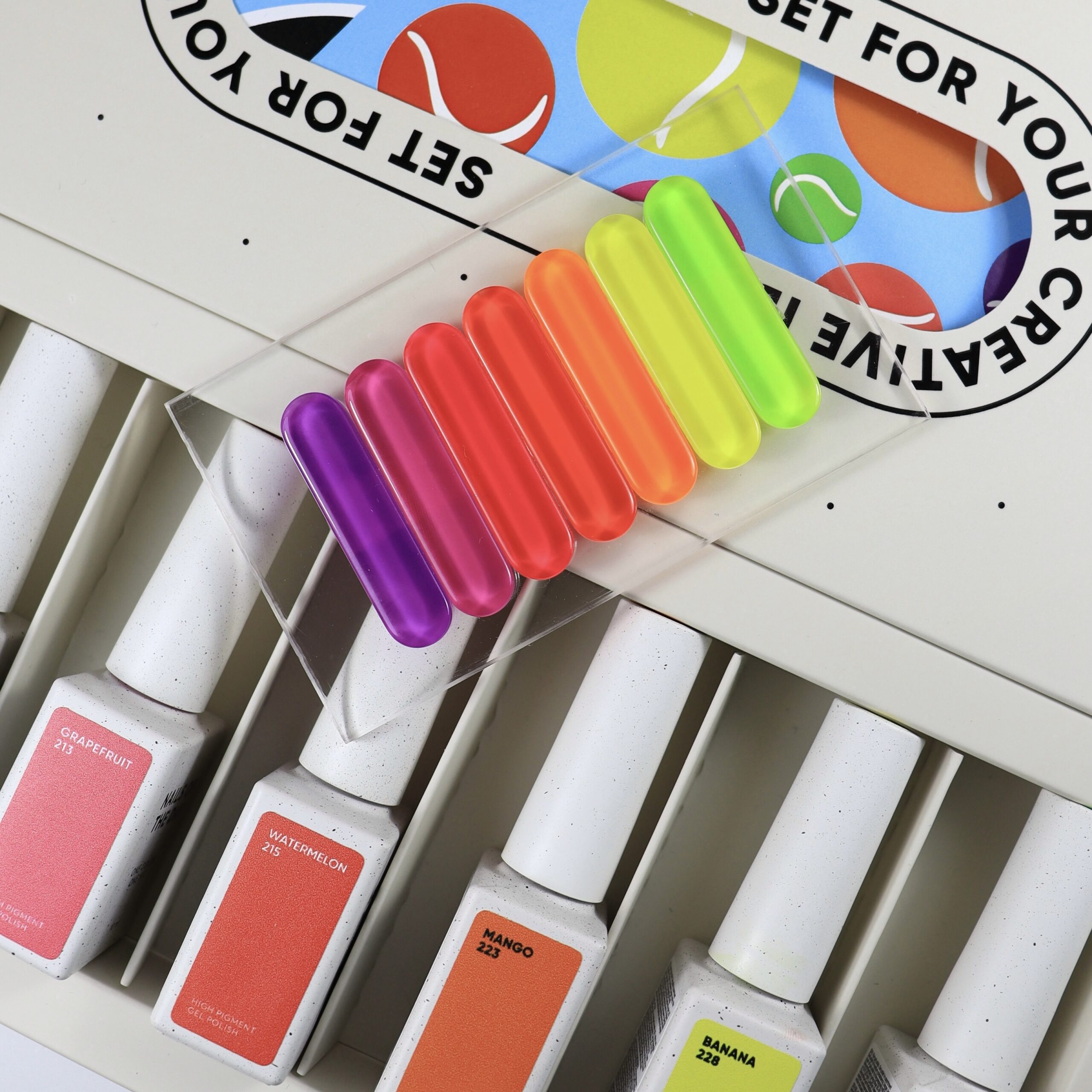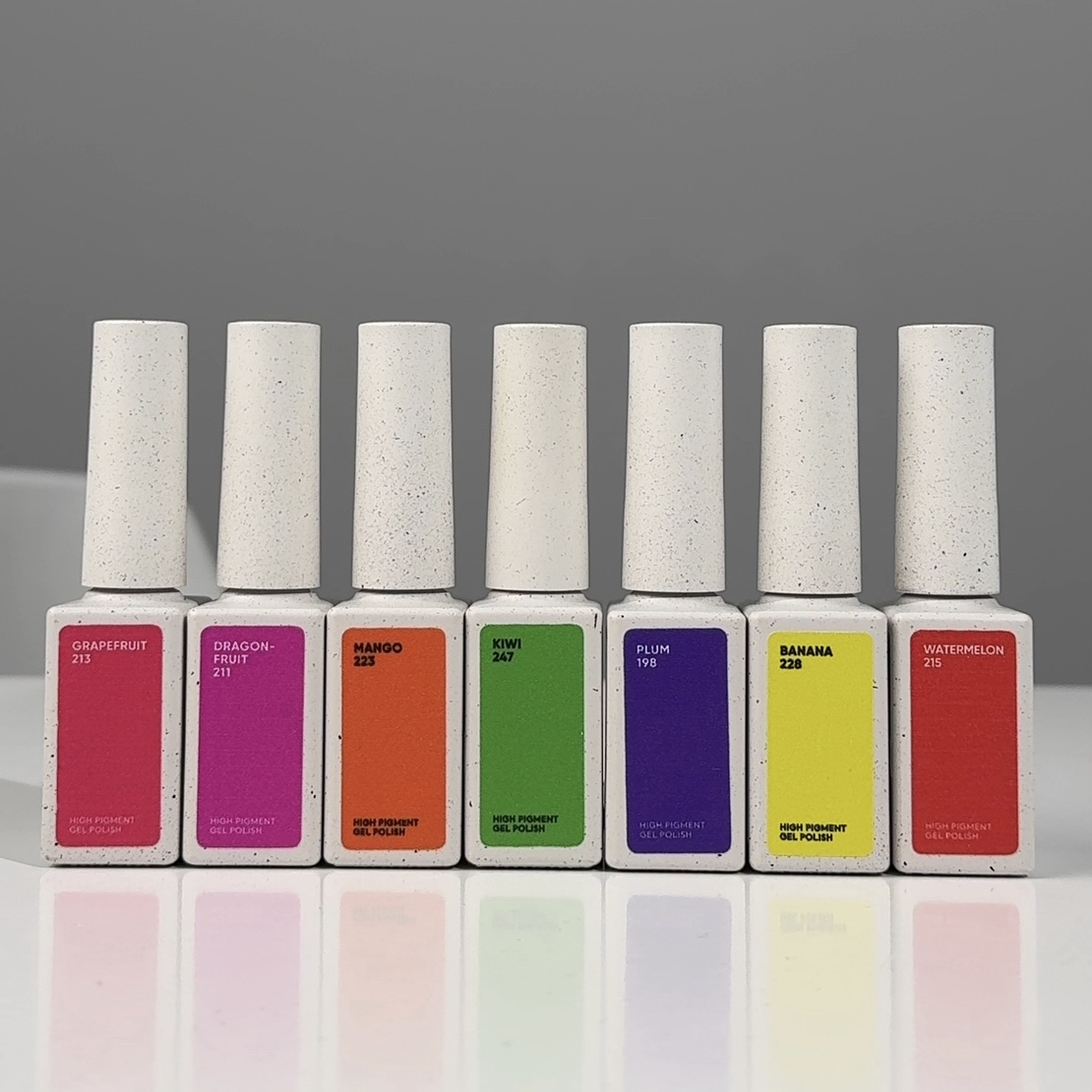 NAILSOFTHEDAY Geellakk Banana-228, 10 ml NAILSOFTHEDAY Geellakk Kiwi-247, 10 ml NAILSOFTHEDAY Geellakk Mango-223, 10 m NAILSOFTHEDAY Geellakk Arbuus-215, 10 ml KÜNELAKK Graaf-247, 10 ml-lakk Graaf3,1 ml. NAILSOFTHEDAY Geellakk Dragonfruit-211, 10 ml NAILSOFTHEDAY Geellakk Plum-198, 10 ml Suvine geellakk on 7 suvist trendikat tooni geellakki, see on kuuma suvepäeva tuju ja tilk mahlast puuvilja küüntel. Iga värv on nagu lonks värsket puuvilja. 7 teie ainulaadset neoonsuvist aktsenti firmalt NAILSOFTHEDAY. Iga värvi värvib meeskond koos stilisti ja koloristiga. Kata ühe kihina ja kuivata ideaalselt.