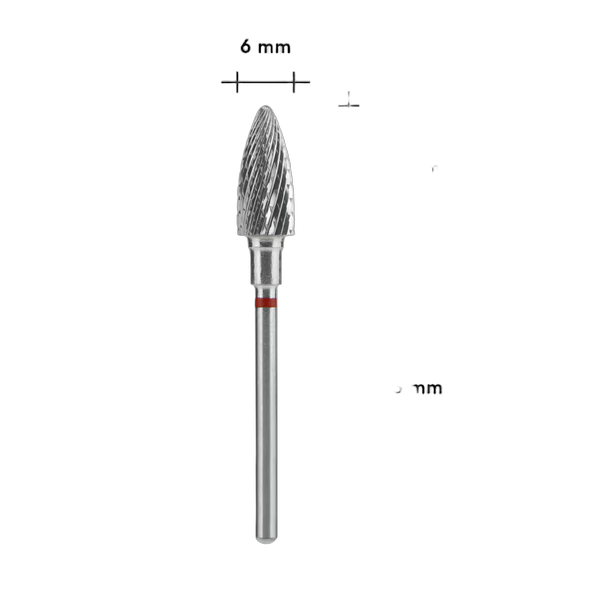 Punase abrasiiviga käbi kujuga frees sobib looduslike ja pikendatud küünte korrigeerimiseks, geellaki ja muude kõvade katete eemaldamiseks ning küünte pikendamise ettevalmistamiseks. Otsik lõikab materjali korrektselt, jättes sileda ja ühtlase pinna. Pediküüris ja podoloogias on see efektiivne sarvestunud nahapiirkondade, kalluste ja kanganaelte töötlemisel.