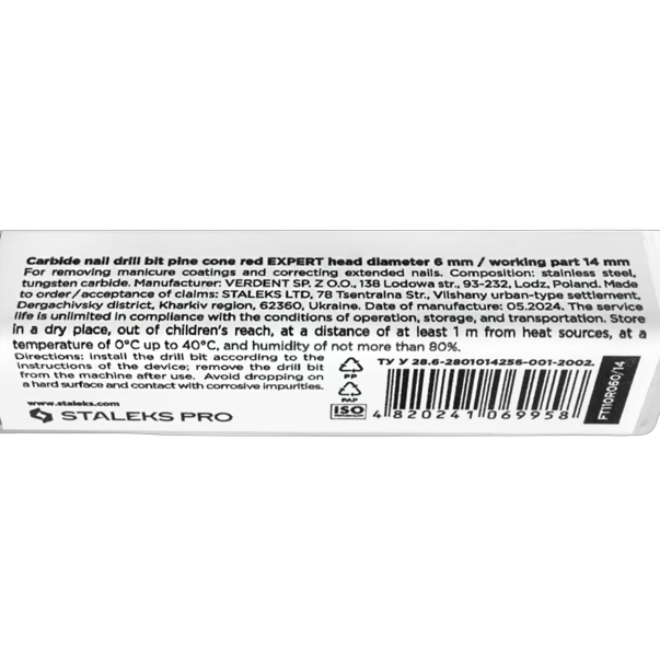 Staleks Pro EXPERT kõvasulamfrees käbi kujuga ja punase (peene) abrasiiviga on delikaatne tööriist aparaatse maniküüri ja pediküüri jaoks. Tööosa läbimõõt on 6 mm, pikkus 14 mm. Täismetallist instrument pehme jäikusega ja peene ristsuunalise soonega tagab õrna ja ohutu töö.