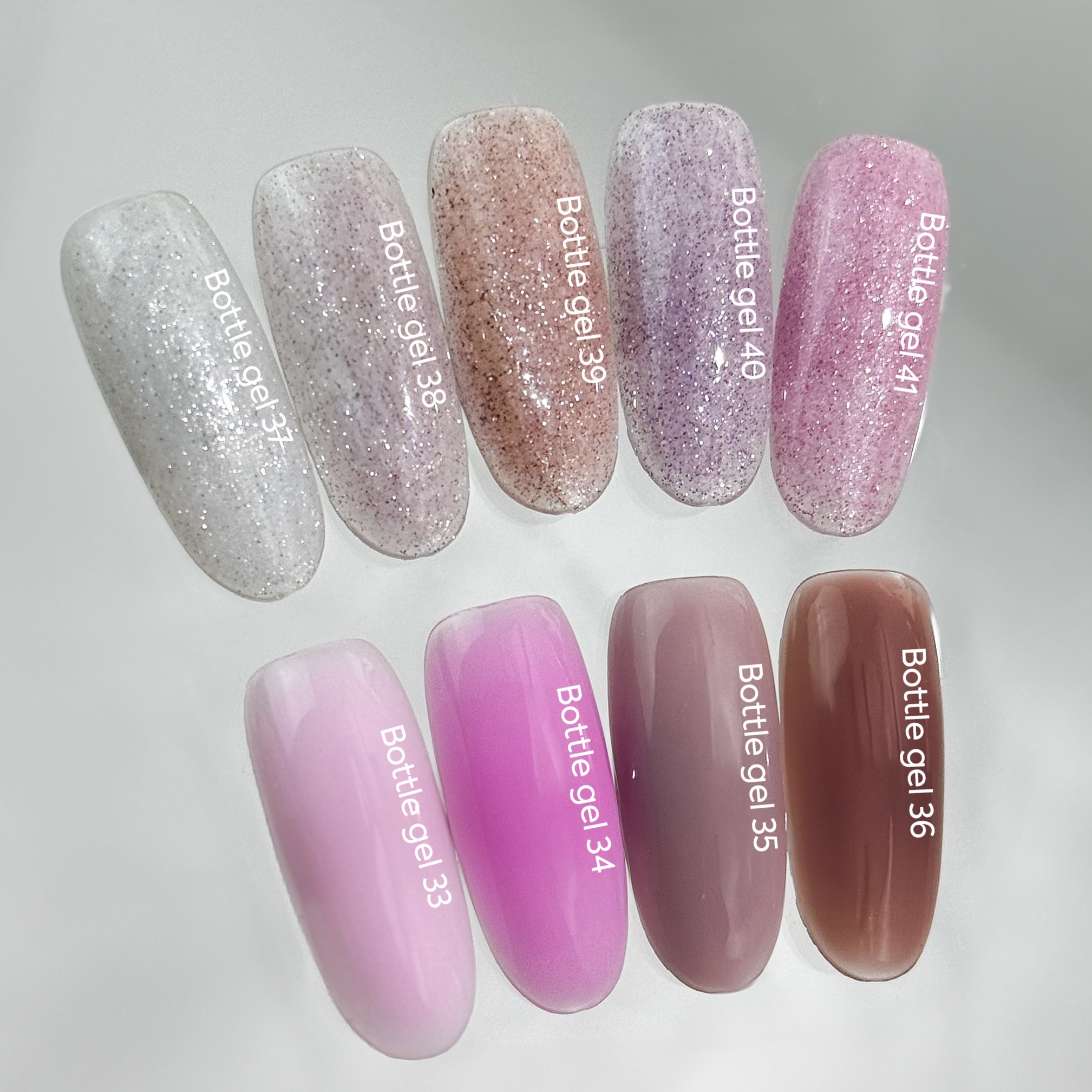 NAILSOFTHEDAY Bottle gel — надміцні гелі із функцією самовирівнювання чудово підходять для зміцнення нігтів, швидкого ремонту тріщин та реставрації кутів. Консистенція середня, комфортні у роботі, швидко просихають, а головне – не містять токсичних речовин.