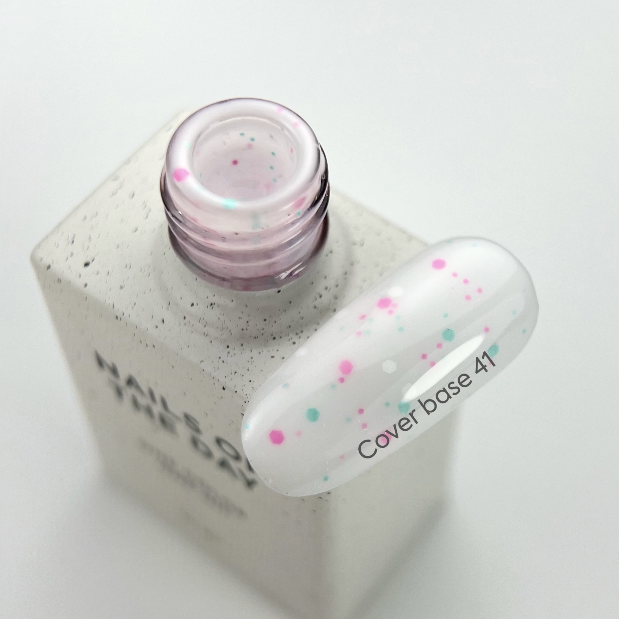 NAILSOFTHEDAY Kattealus 41 konfetti — küllastunud piimjas roosa, türkiissinise ja valge konfeti aluskattega küüntele, 10 ml
