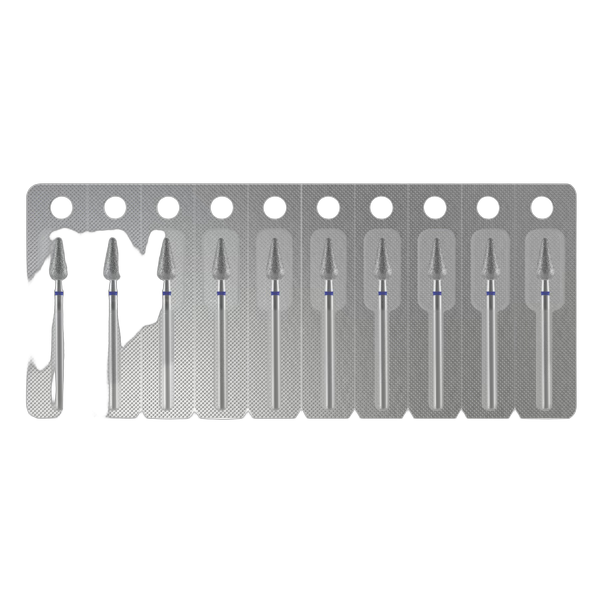Sinise markistusega pirnkujuline frees tagab ohutuse ja tulemuslikkuse korrektsel kasutamisel. Jaelgige poorlemiskiirust - liiga korged vaeaertused voivad tekitada ylekuumenemist ja vigastada klienti. Sobib manikyris kutiikulite toestmiseks ja eemaldamiseks, kyylgsete vallide ja kyyneymbruseavade tootlemiseks, pteryygiumi eemaldamiseks, siinuste avamiseks ning kynte lihvimiseks. Pedikyris kasutatakse kandade pragude tootlemiseks ning kalluste eemaldamiseks.
