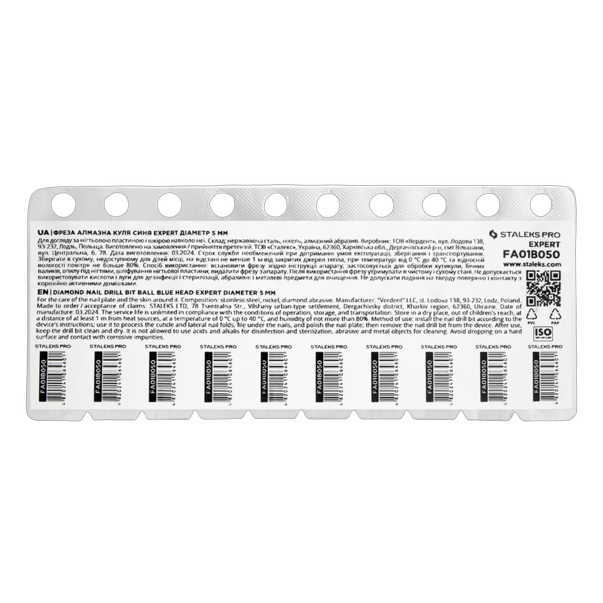 Kerakujuline frees on yks populaarsemaid freesivorme. STALEKS PRO EXPERT sinise markistusega teemantfrees on moeldud manikyyriks - kyylgsete vallide avamiseks ja kutiikulite tootlemiseks. Pedikyris sobib see suurepaeraselt vartmozoolide eemaldamiseks.