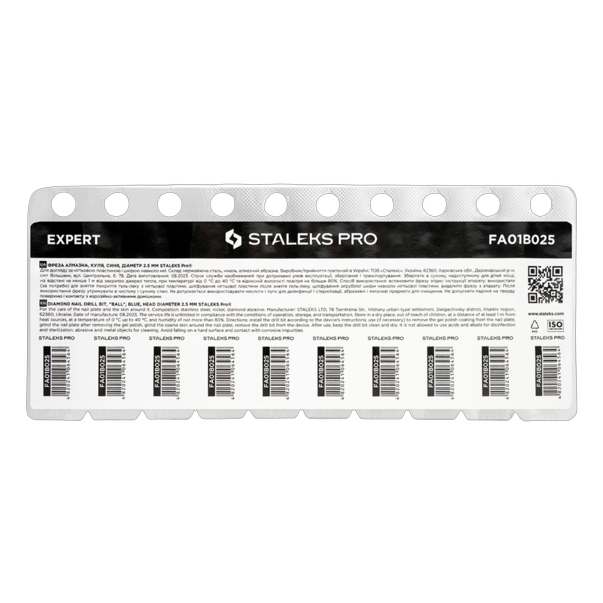 Насадки представлени в двух степенях абразивності — мелкой (червоної) та середньої (синьої) — з діаметром 2,5 мм.Области застосування алмазної фрези шар Staleks Pro EXPERT FA01B025: робота з кутикулою; обробка бокового валика; обробка бокових синусов; устранение стержневих мозолей; обробка трещин; пирсинг нігтя. Предельно допустимая скорость вращения насадки — до 30 000 об/мин.