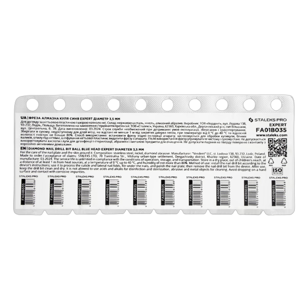 Kerakujuline teemantfrees on professionaalse kyyneteenuse yks vajalikumaid tooriistakujusid. STALEKS PRO EXPERT 3,5 mm sinise markistusega frees on loodud aparaatmanikyyriks - kyylgsete vallide avamiseks ja kutiikulite kvaliteetseks tootlemiseks. Pedikyris leiab kasutust vartmozoolide eemaldamisel.