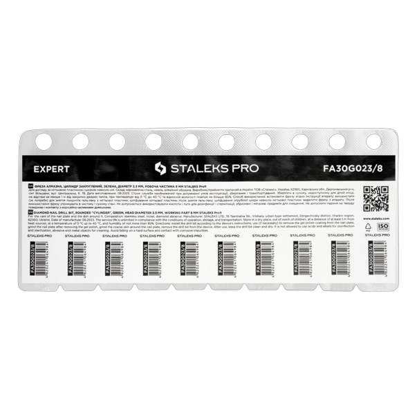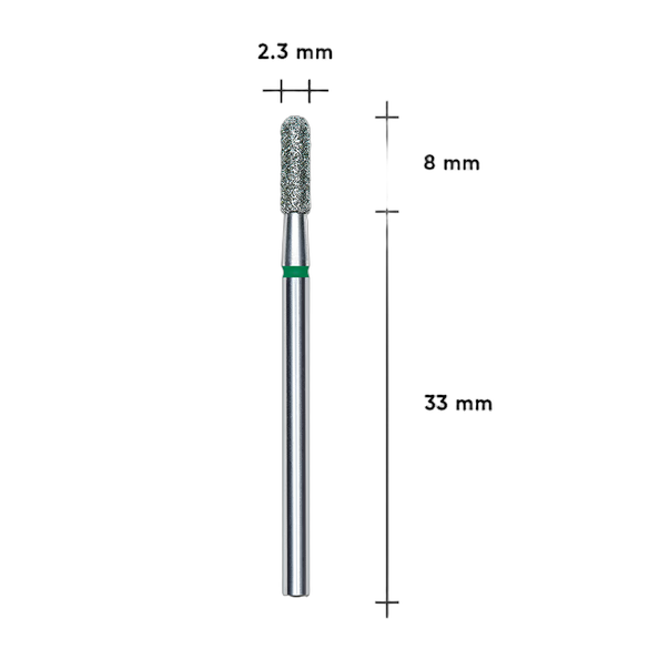 STALEKS PRO EXPERT ymardatud silindrikujuline teemantfrees rohelise markistusega on toehus vahend kyynteplaadi tootlemiseks, pinna lihvimiseks ja yhtlustamiseks. Roheline markistus tahistab jaemedat abrasiivsust intensiivsemaks tootlemiseks. Kasutatav nii manikyris kui pedikyris.
