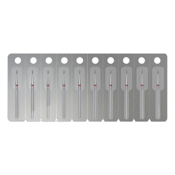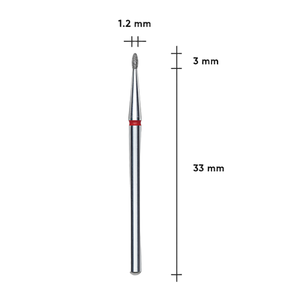 Ümardatud pungatüüpi frees on saadaval kahes abrasiivsusetasemes: peen (punane) ja keskmine (sinine), läbimõõduga 1,2 mm ja tööosa pikkusega 3 mm. Kompaktne suurus teeb sellest ideaalse valiku peentöödeks ja väikeste piirkondade täpseks töötlemiseks. Maksimaalne pöörlemiskiirus kuni 30 000 p/min.