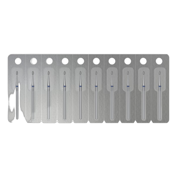 Ümardatud pungatüüpi frees on saadaval kahes abrasiivsusetasemes: peen (punane) ja keskmine (sinine), läbimõõduga 1,6 mm ja tööosa pikkusega 3,4 mm. Sinine tähis tähistab keskmist abrasiivsustaset, mis pakub head tasakaalu materjali eemaldamise ja pinnaviimistluse vahel. Maksimaalne pöörlemiskiirus kuni 30 000 p/min.