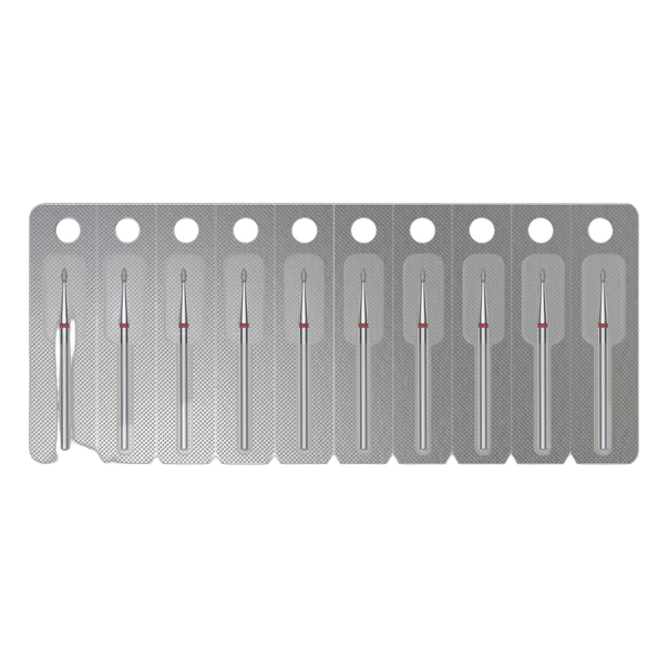 Otsiku läbimõõt on 1,6 mm, tööosa pikkus 3,4 mm. Punane märgistus tähistab peent abrasiivsustaset, mis on eriti sobiv viimistlustöödeks ja tundlike piirkondade hoolikaks töötlemiseks. Ümardatud kuju minimeerib vigastuste riski nahal. Maksimaalne pöörlemiskiirus kuni 30 000 p/min.