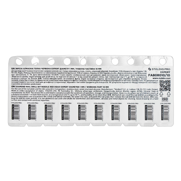Frees on saadaval kahes abrasiivsuastmes: peen (punane) ja keskmine (sinine), läbimõõduga 1 mm. Maksimaalne lubatud pöörlemiskiirus on kuni 30 000 p/min. Kasutusalad hõlmavad kutiikulite, pragude, külgvallide, külgsoonuste ja raskesti ligipääsetavate kohtade töötlemist ning küüneplaadi lõikamist.