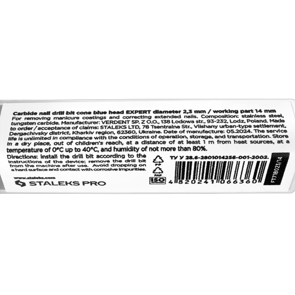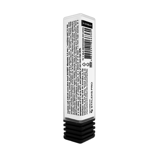 STALEKS PRO EXPERT koonusekujuline kõvasulamfrees läbimõõduga 2,3 mm on aparaatmaniküüri meistri asendamatu tööriist. See on mõeldud kutiikulite, külgvallide töötlemiseks ja küüneplaadi korrigeerimiseks. Sobib ka küüne ettevalmistamiseks pikendamise ja korrektsiooni jaoks ning kasutamiseks aparaatpediküüris.