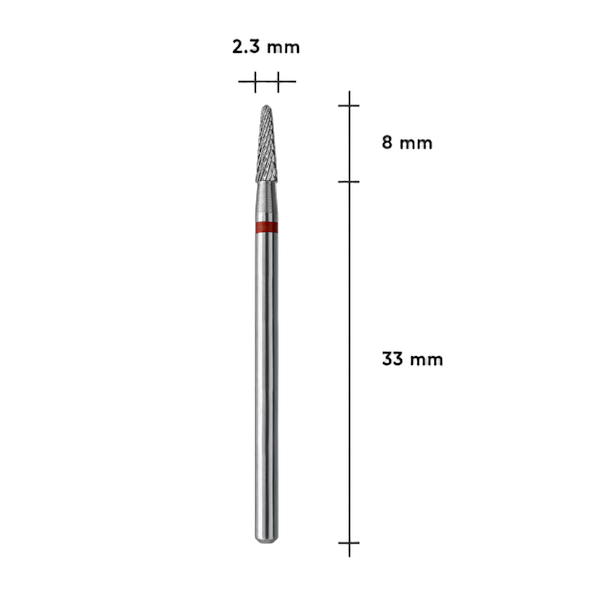 STALEKS PRO EXPERT koonusekujuline kõvasulamfrees 2,3 mm punase peene teritusega on mõeldud hoolikaks ja täpseks küüneplaadi töötlemiseks sügavustes, kutiikulite läheduses ja muudes raskesti ligipääsetavates kohtades. Modelleerimise ajal võimaldab frees mugavalt töötada mahukate katetega.