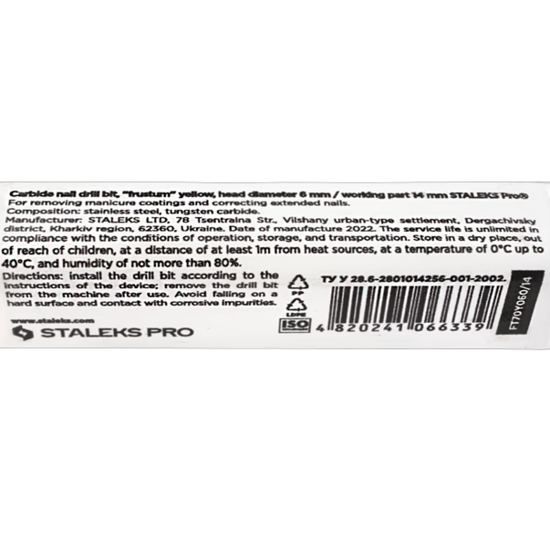 Kõvasulamfrees Koonusjas kärbitud STALEKS PRO EXPERT 6 x 14 mm kollane (ülipeen)