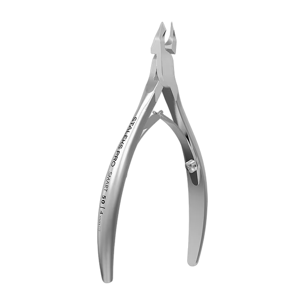 STALEKS PRO SMART 50 professionaalsed nahaküünekäärid on mõeldud kutiikula ja küüneümbruse jämedakoelise naha lõikamiseks klassikalise ja kombineeritud maniküüri ning pediküüri käigus. Käsitsi raadiusteritusega lõikeservad tagavad täpse ja puhta lõike ilma rebendite ja ebaühtluseta.\n\nNS-50-4 käärid kuuluvad professionaalsesse seeriasse ja taluvad korduvat steriliseerimist ja desinfitseerimist ilma kvaliteedi languseta. Sirged 4 mm pikkused lõikeservad on teritatud mikroskoopilise täpsusega teemantkettastel — tulemuseks on ühtlane ja korrektne lõige ilma haavade ja rebendita. Instrument säilitab teravuse pikka aega ka intensiivse salongi kasutuse juures. Lõikeosa on kõrgendatud „kannaga