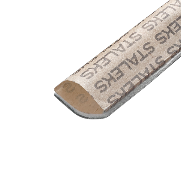 STALEKS PRO EXPERT 20 papmAm vahetusfailid puitalusel on ökoloogiline ja hügieeniline lahendus professionaalse maniküüri jaoks. Komplekt sisaldab 10 ühekordselt kasutatavat viili sirgel puitalusel, mis võimaldab iga kliendi jaoks kasutada värsket instrumenti.\n\nAbrasiiv on kantud kraft-paberile professionaalse kvaliteediga. Abrasiivi all asub vedruv vahtkiht, mis tagab pehme käigu ja parema manööverdamisvõime viimisel. Failid ei sisalda kleepuvat alust — need on juba kinnitatud puitalusele ja kasutusvalmis.\n\n240 griti pehme abrasiiv sobib suurepäraselt naha ja küünte õrnaks lihvimiseks ning viimistlemiseks. Ökoloogilised ja lagunevad materjalid muudavad utiliseerimise lihtsaks ja keskkonnasõbralikuks.\n\nKasutamine on äärmiselt lihtne: võtke kliendile kasutamata viil ja pärast protseduuri vahetage see uue vastu. Sirge kuju sobib mitmekülgseks kasutamiseks nii maniküüris kui ka pediküüris.