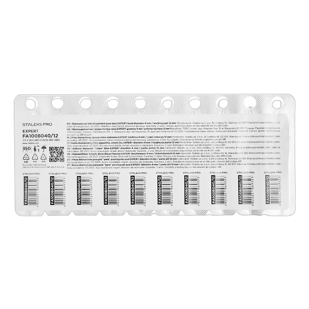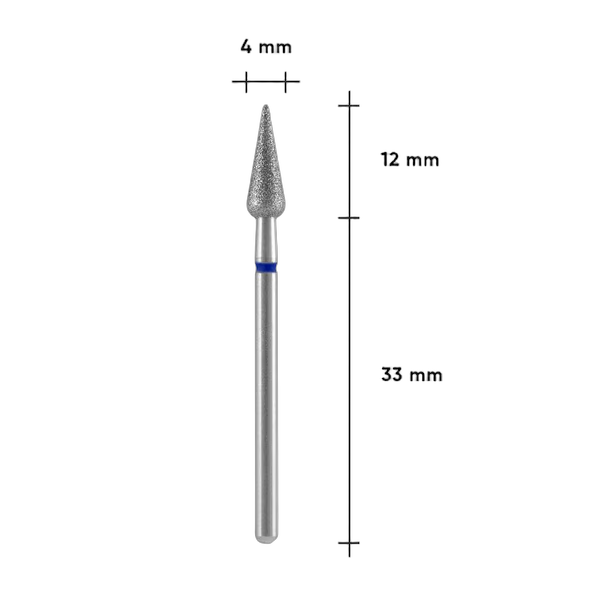 STALEKS PRO EXPERT teemantfrees pirnjas terav Blue 4 mm toeoepinnaga 12 mm on keskmise abrasiivusega instrument, mis on moeldud naha delikaatseks toeoetlemiseks. Pirnjas terav vorm uehendab endas kera ja terava leegi funktsioonid, voimalades toeoetamist raskesti ligipaasetavates kohtades, valiste nahapiirkondade toeoetlemist ning tehiskueeneplaatide lihvimist ilma vigastusohuta.