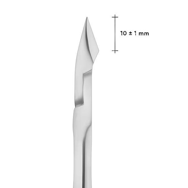 Кусачки NE-21-10 оснащены прямыми режущими кромками длиной 10 мм — универсальный размер, удобный как для начинающего, так и для опытного мастера. Заточены под микроскопом на алмазных кругах для ровного и аккуратного среза без ранок и заусенцев. Острота сохраняется длительное время даже при интенсивной нагрузке в салонах. Выраженный выступ «пятка» позволяет обрабатывать кожу разной толщины и выполнять более глубокий срез.