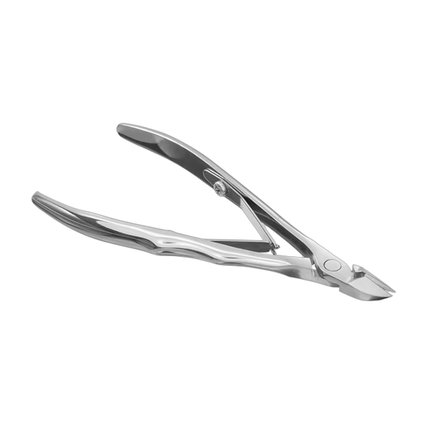 Металл устойчив к воде и химическим веществам. Поверхность полируется в два этапа: на шлифовально-лепестковом круге — для устранения шероховатостей, затем пастой ГОИ — для глянца и защиты от коррозии.PRO EXPERT 21 NE-21-10 профессиональные кусачки для кожи: конструктивные особенностипрофессиональные кусачки для кожи;зауженная форма рабочей части;тип пружины — две смыкающиеся металлические пластины;ручки с волнообразными выступами;режущая часть с «пяткой»;плавный и легкий ход благодаря точной подгонке и шлифованию шарнира;перевернутая заклепка для упрощения обслуживания;длина лезвия — 10 мм;режущие кромки прямые, под наклоном;длина инструмента — 12,11 см;вес — 49 г;длина ручек от шарнира — 10 см;глянцевая полировка;материал — нержавеющая хирургическая сталь;пассивация + обработка пастой ГОИ для стойкости к коррозии;ресурс до следующей заточки — 35 000 циклов.Очищение инструмента