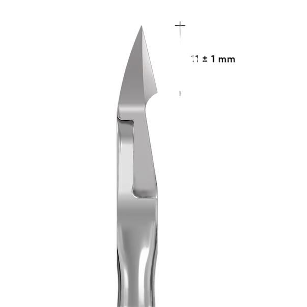Кусачки NC 10-11 оснащены режущими кромками довжиною 11 мм зі средним наклоном. Заточка выполняется майстром под микроскопом на алмазних кругах, что забезпечує ровный аккуратный рез при манікюрі без ранений та задирок. Після заточки кусачки NC 10-11 сохраняют остроту продолжительное время. Режущие полотна зі средним наклоном та низкой "пяткой" (выступ ріжучої частини) хорошо открывают обзор рабочей зоны.