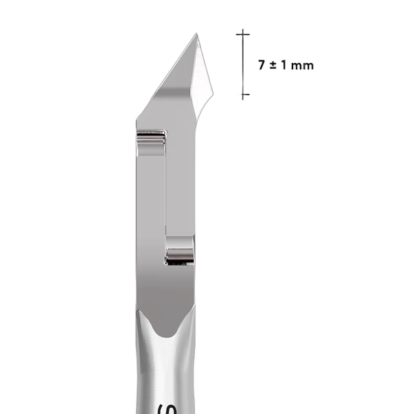 Кусачки Cталекс Smart 10 NS-10-7 оснащены прямыми режущими кромками длиной 7 мм. Заточка выполняется под микроскопом на алмазных кругах, что обеспечивает ровный аккуратный рез при маникюре без ранений и заусенцев. Острота сохраняется продолжительное время. Режущая часть с выступом (“пяткой”) над шарнирной плоскостью позволяет обрабатывать кожу различной толщины и выполнять более глубокий срез.