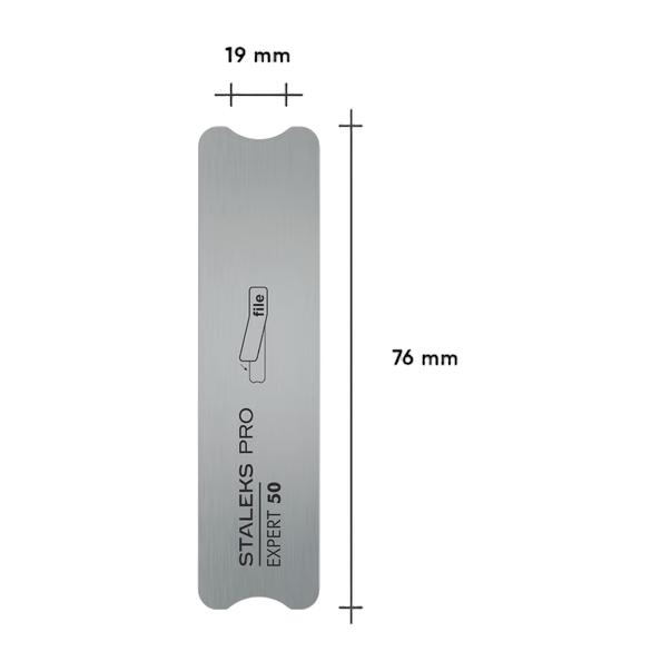 STALEKS PRO EXPERT 50 metallist lühike alusviil on loodud professionaalseks kasutamiseks. Seda kasutatakse küünte lihvimiseks ning nende pikkuse ja vormi korrigeerimiseks koos ühekordsete isekleepuvate vahetusfailidega. Abrasiivkleebise karedus ja tüüp valitakse vastavalt konkreetsele ülesandele, samal ajal kui roostevabast terasest alusviil desinfitseeritakse ja steriliseeritakse pärast iga klienti.