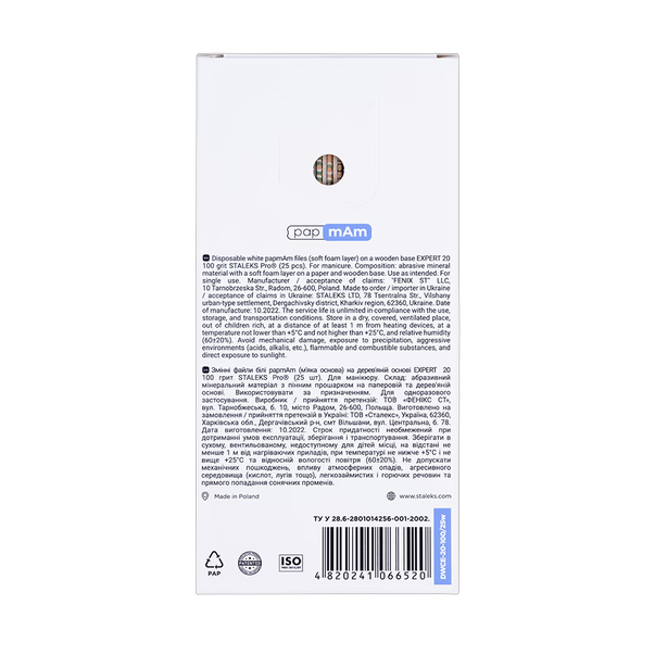 Valged pehmed vahetusfailid papmAm puidust alusel 100 gritti STALEKS PRO EXPERT 20, 25 tk