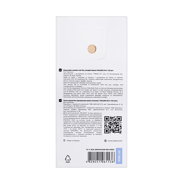 Ühekordsed puidust viilialused Staleks PRO Expert 20 on loodud jäigaks aluseks papmAm ühekordsete abrasiivfailide jaoks. Liimivabad vahetatavad failid pannakse peale nagu kate, kattes alust mõlemalt poolt ja otstest.\n\nMõeldud professionaalsetele meistritele sanitaar- ja hügieeninormide järgimiseks — pärast kasutamist utiliseeritakse ühekordsed materjalid ja iga järgmise kliendi jaoks kasutatakse uusi. See tagab laitmatult hügieenilise teenuse ilma lisapingutusteta.\n\nPuidust alus on valmistatud kasepuust, mis teeb selle oluliselt kergemaks võrreldes metallalusega. Kaaluga vaid 2,9 g väsib meistri käsi tööpäeva jooksul tunduvalt vähem. Sirge kujuga alus on mugav ja ohutu.\n\nÜhildub paljude STALEKS PRO vahetatavate failidega, sealhulgas DFC, DF, DFCX, DFEX, DFE ja DFCMIX seeriatega erinevates grittides (100–240). Mitmekülgne lahendus, mis katab kõik maniküüri ja pediküüri vajadused.
