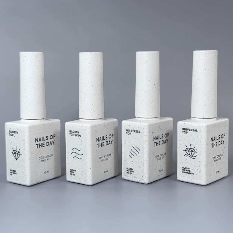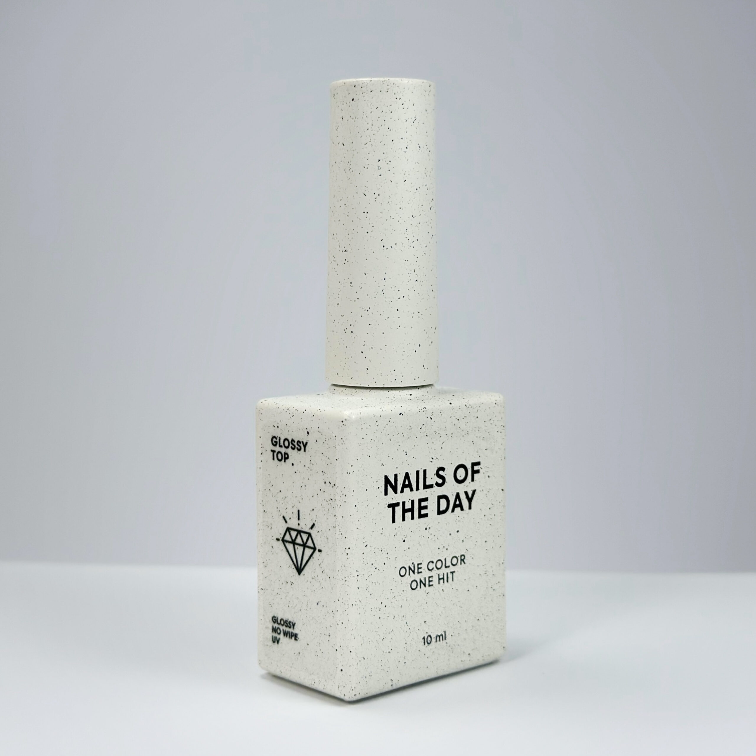 Nailsoftheday Glossy top no wipe – універсальний глянцевий топ без липкого шару та з уф-фільтрами. Його вбудований UV-фільтр надійно захищає покриття від вигорання, зберігаючи яскравість навіть найніжніших тонів. Цей топ стане ідеальним супутником для пастельних і світлих гель-лаків, даруючи їм тривалу свіжість. GLOSSY  /  NO WIPE /  UV, консистенція рідка  Переваги Glossy top no wipe: – ідеальний для світлих відтінків; – без липкого шару; – швидка полімеризація; – оптимальна густота, не затікає під кутикулу, на бічні валики; – розгладжує нерівності покриття; – стійкий до механічних пошкоджень; – не тріскається; – попереджає появу відколів; – захищає від дії ультрафіолетових променів; – не спотворює відтінок кольорового покриття; – не жовтіє і не тьмяніє з часом; – забезпечує гарний глянцевий блиск.