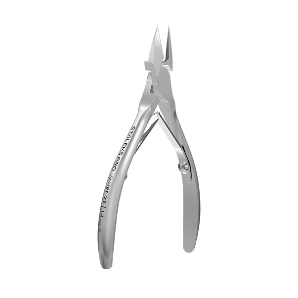 STALEKS PRO SMART 71 (NS-71-14) pihdit on suunniteltu poistamaan turvallisesti sisäänkastuneet varpaankynnet klassisen ja yhdistelmäpedikyyrihoidon aikana. Sisäänkasvaneet kynnet voivat aiheuttaa huomattavaa epämukavuutta, ja jos niitä ei käsitellä, ne voivat johtaa tulehdukseen ja kipuun. Nämä pihdit käsittelevät tehokkaasti kynsien sisäänkasvun alkuvaiheita, vaikka pitkälle edenneet tapaukset tulee aina lähettää jalkalääkärille.