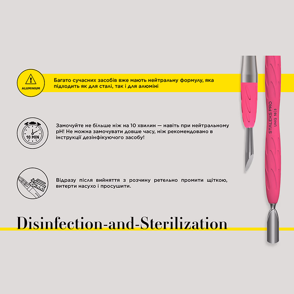 Tooosa on valmistatud vastupidavast roostevabast terasest, mis on tuntud oma kestvuse ja kulumiskindluse poolest. UNIQ seeria poleerimine kaitseb instrumenti desinfitseerimise ja steriliseerimise ajal ning hoiab ara korrosiooni. Keermemehhanismi alus on alumiiniumist, mittetooosa on kaetud roosakasroosa hupollergnnse silikooniga.