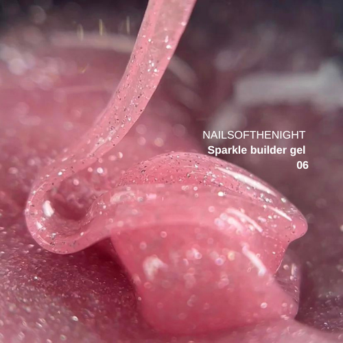 A novelty from Nailsofthenight — Sparkle builder gel light-reflecting building gel: – an ideal building gel with light-reflecting particles; - has a denser consistency; – does not spread during application due to its viscosity, while it is easily leveled with a brush; – forms and maintains the arch, providing strength and stability; – for all types of extensions and strengthening (suitable for the most complex extensions).