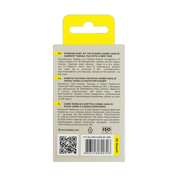 The STALEKS PRO UNIQ 35 Combo thin rasp with a curved tip (WPPQ-35) is an innovative modular attachment that threads into the Combo UNIQ handle, enabling technicians to build a custom instrument perfectly suited to each procedure. Interchangeable working heads allow for limitless combinations, so every treatment gets exactly the right tool.