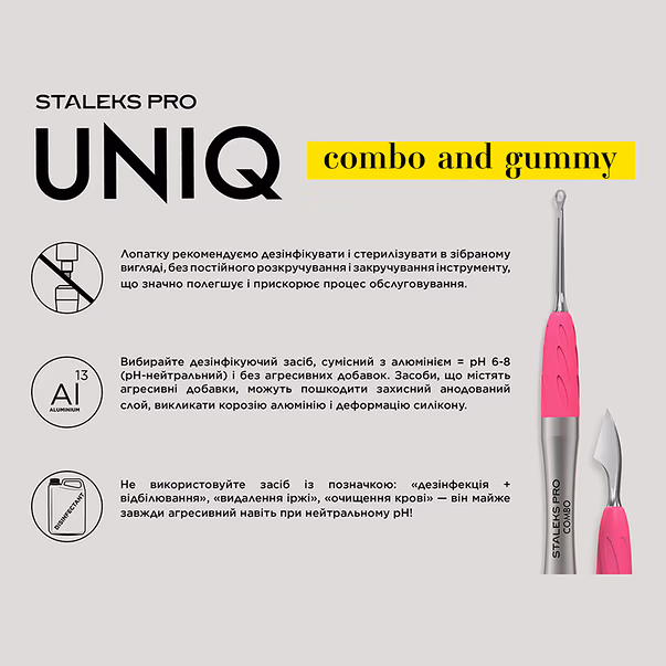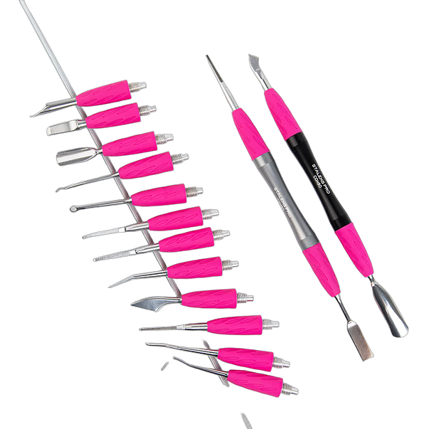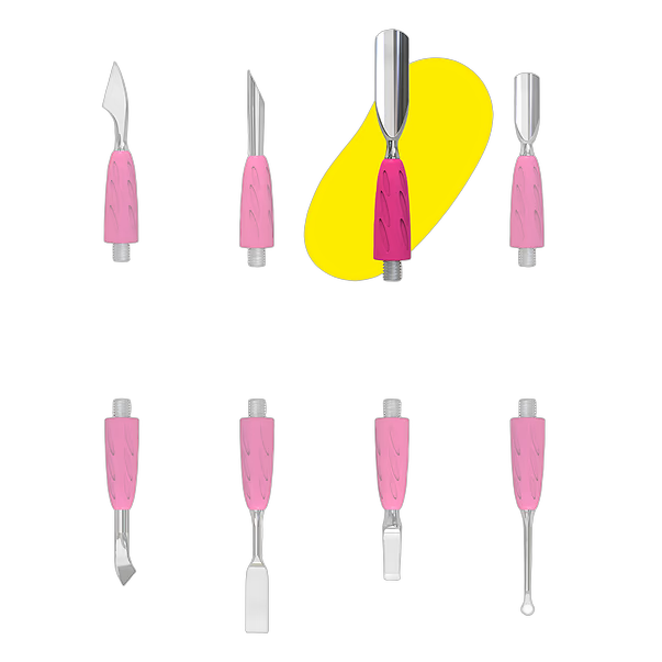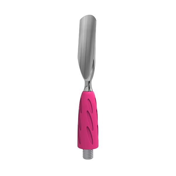 Valmistettu korkealaatuisesta ruostumattomasta teräksestä ja silikonista, kaareva leveä profiili tarjoaa virheettömän tarkkuuden ja prosessin nopeuden. Takana oleva kierreliitin lukittuu tukevasti kahvaan. Silmäänpistävä vaaleanpunainen hypoallergeeninen silikonikahva on miellyttävä pitää ja tarjoaa erinomaisen liukastumisenestokyvyn, pitäen työntimen vakaana kädessäsi ja ranteen vapaana pitkienkin tapaamisten aikana. Kestävyydestään ja kulutuskestävyydestään tunnetusta ensiluokkaisesta lääketieteellisestä seosteräksestä taottu instrumentissa on houkutteleva satiiniviimeistely. UNIQ-sarjan kiillotettu pinnoite kestää toistuvia desinfiointi- ja autoklaavijaksoja syöpymättä.