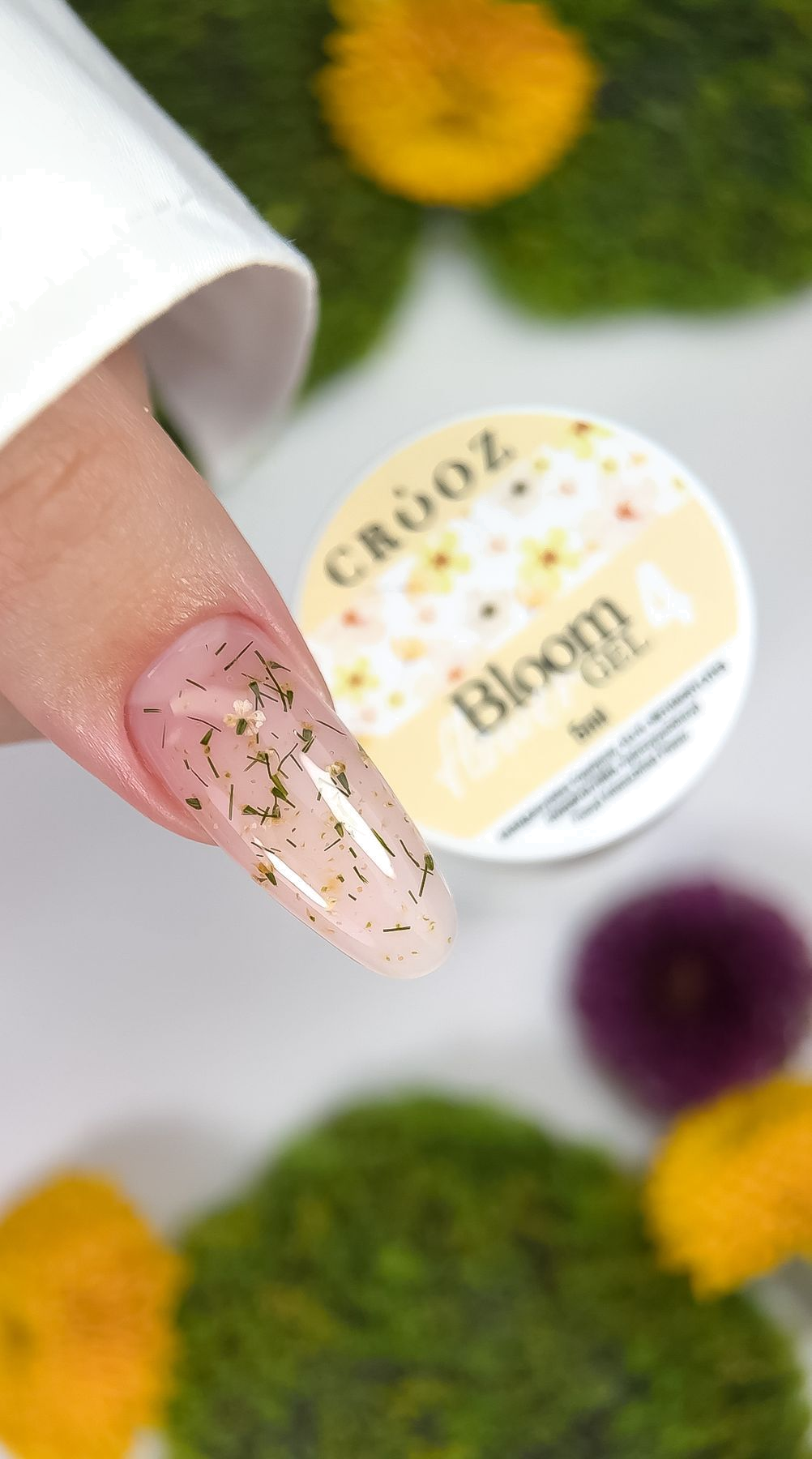 Bloom Flower Gel №04 – гель с сухоцветами для дизайна ногтей (жёлтые и белые лепестки, зелёные травинки)