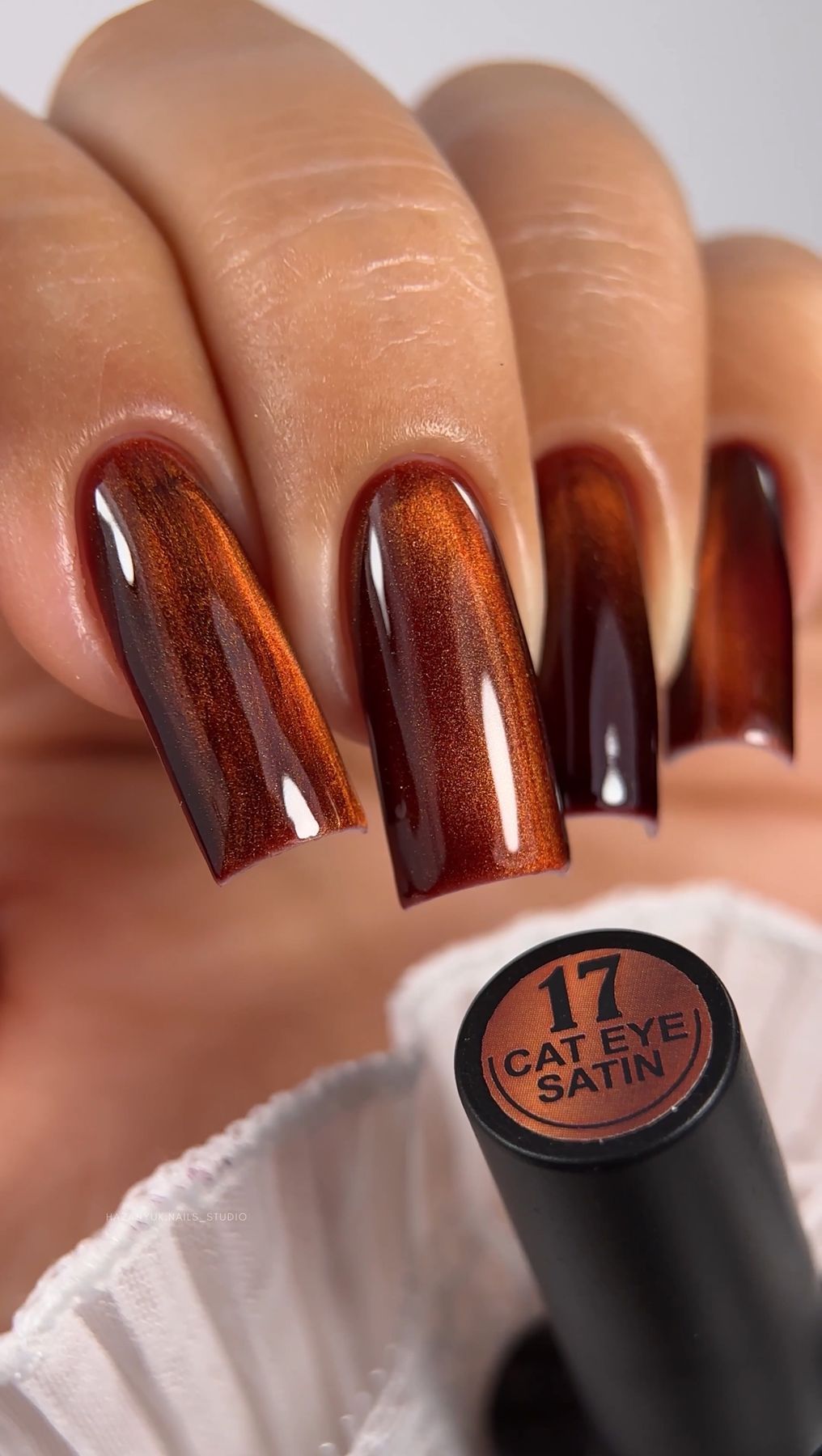 Crooz Satin Cat 17 Caramel Flame — сатиновый магнитный гель-лак Cat Eye
