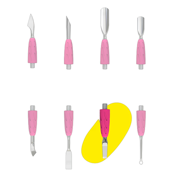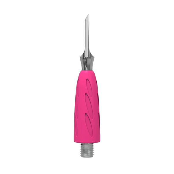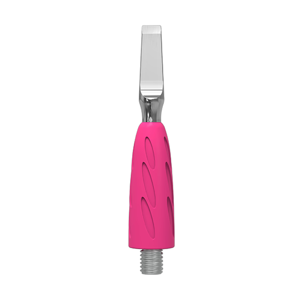Valmistettu ensiluokkaisesta ruostumattomasta teräksestä ja silikonista, ohut työstöreuna takaa erinomaisen tarkkuuden ja prosessinopeuden. Kääntöpuolella oleva kierreliitin kiinnittää liittimen tiukasti kahvaan. Eloisa vaaleanpunainen hypoallergeeninen silikonipinnoite tarjoaa mukavan, liukumattoman pidon, joka pitää ranteen rentona ja väsymättömänä pitkien hoitojen aikana. Valmistettu korkeaseosteisesta lääketieteellisestä teräksestä, joka tunnetaan kestävyydestään ja kulutuskestävyydestään, UNIQ-sarjan satiinikiillotettu viimeistely suojaa korroosiolta toistuvien desinfiointi- ja sterilointiprosessien avulla.