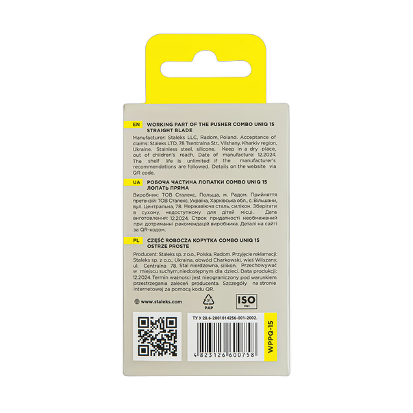 STALEKS PRO Combo UNIQ 15 suorateräinen manikyyrilastalla on innovatiivinen modulaarinen kiinnike, joka kiertyy Combo UNIQ -kahvaan ja muodostaa tehokkaan tarkoitukseen rakennetun instrumentin. Ammattilaiset voivat valita ja yhdistää vaihdettavat työpäät kootakseen ihanteellisen työntimen mihin tahansa toimenpiteeseen.