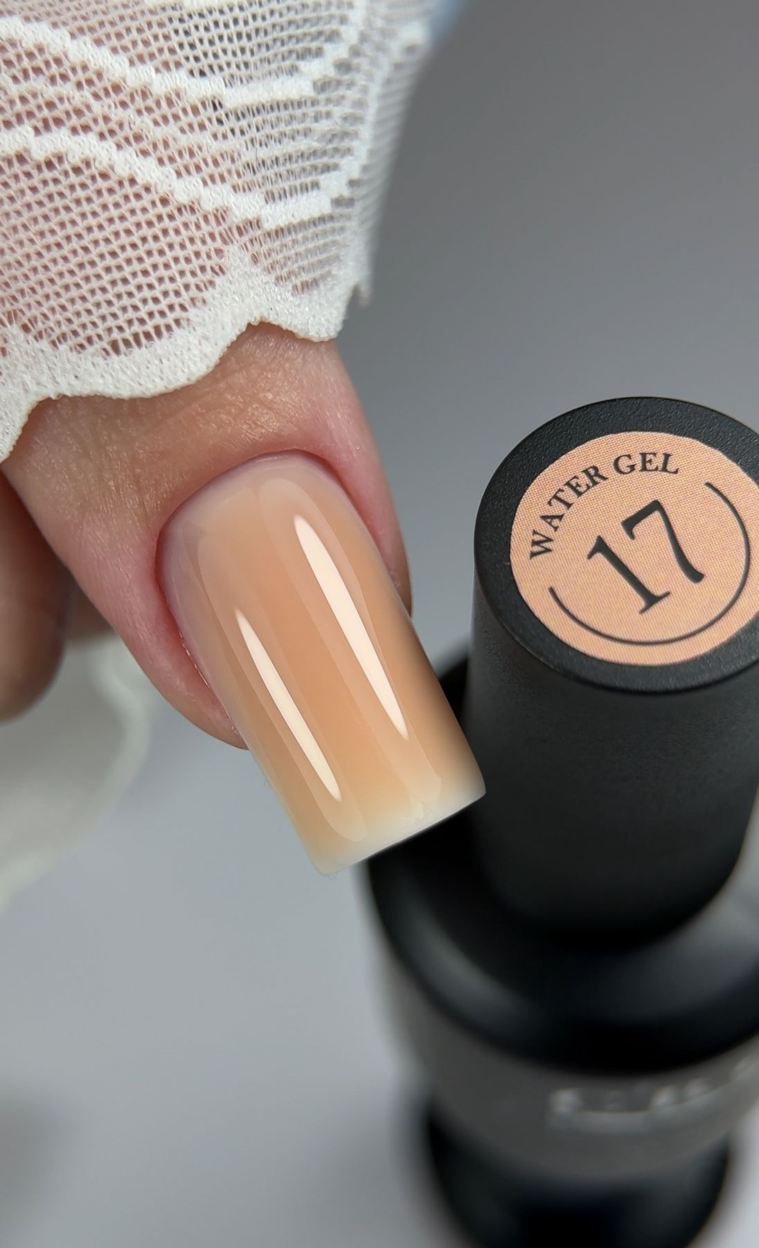 Crooz Water Gel 17 — жидкий тёплый карамельно-бежевый гель для натурального наращивание и укрепления ногтей