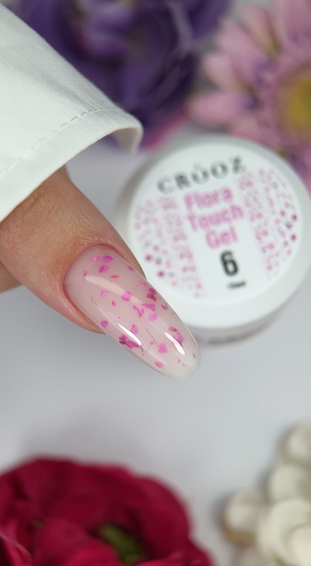 Crooz Flora Touch Gel №06 — нейтральний гель с розовыми сухоцветами для маникюра