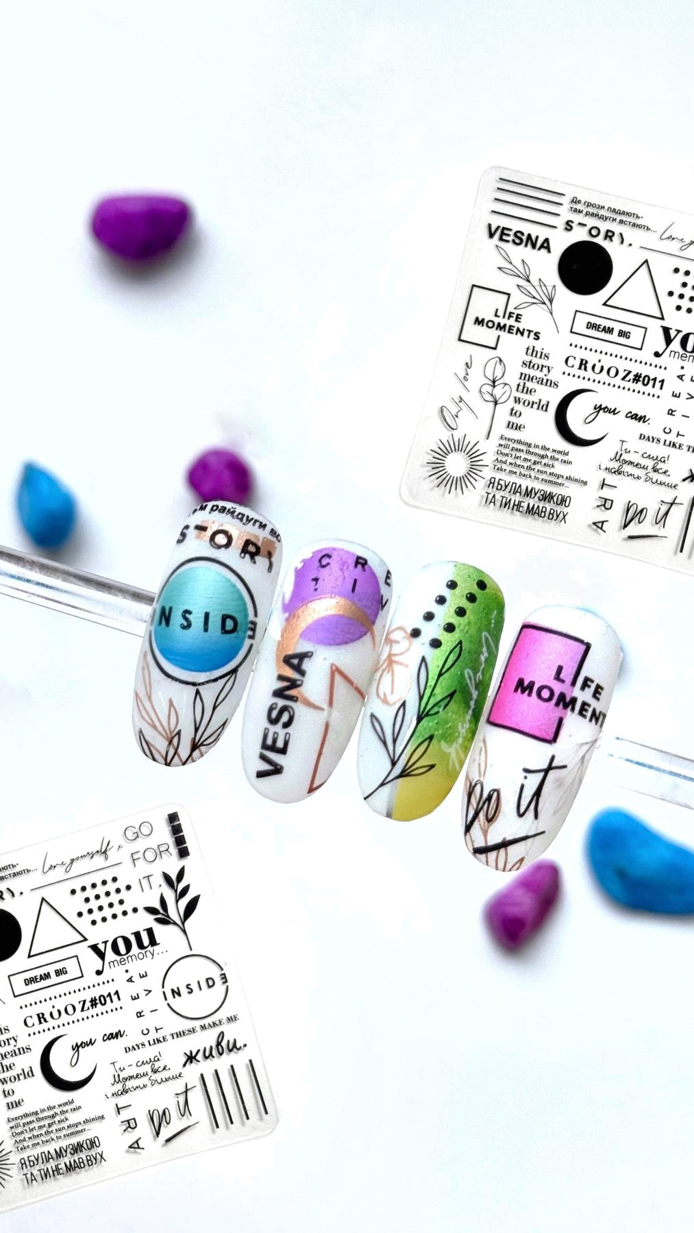 Crooz Пластина для стемпинга №11 — минималистичный дизайн и смысловые фразы