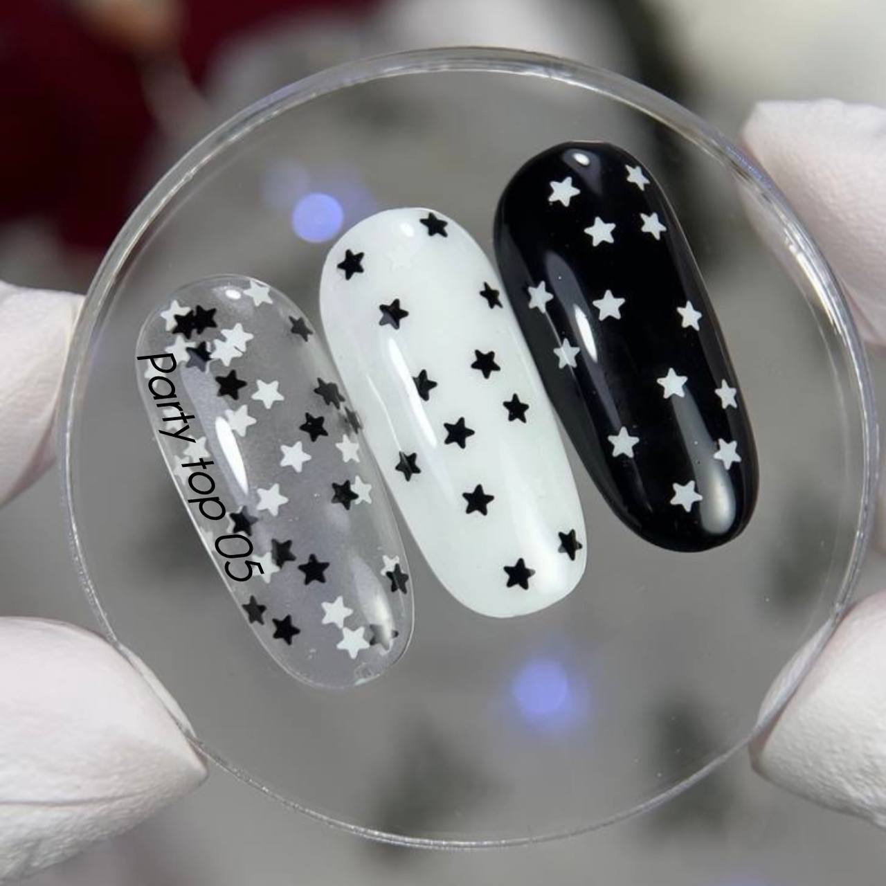 Avaleht/Pood/Pealislakid/NAILSOFTHEDAY Party top 05 - läikiv pealispind ilma kleepuva kihita mustade ja valgete tähtedega, 10 ml