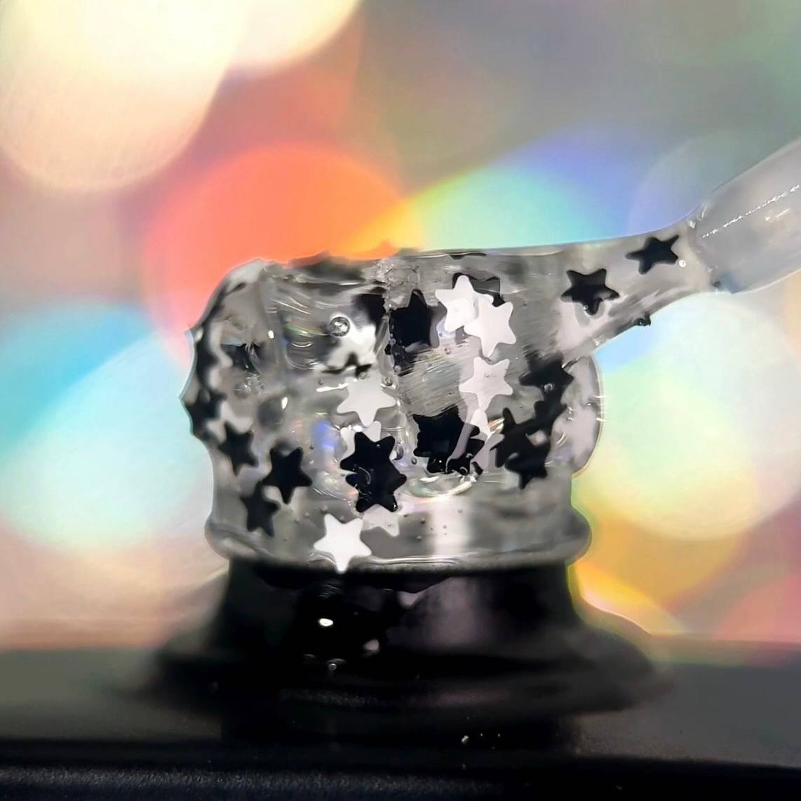 NAILSOFTHEDAY Party top 05 - läikiv pealispind ilma kleepuva kihita mustade ja valgete tähtedega, 10 ml