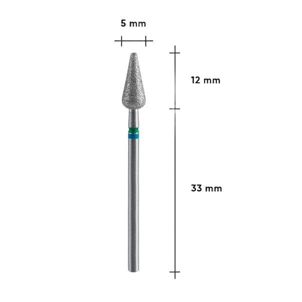 STALEKS PRO EXPERT DUO sinine-roheline terav pirnjas frees (5 x 12 mm) on keskmiselt jämedateraline otsik topelt-teemantpealekandmisega naha delikaatseks töötlemiseks. See unikaalne vorm ühendab endas kera ja terava leegi funktsioonid, võimaldades töötada raskesti ligipääsetavates kohtades, töödelda nahka, puhastada küüneplaate ja lihvida ilma vigastamisohuta.