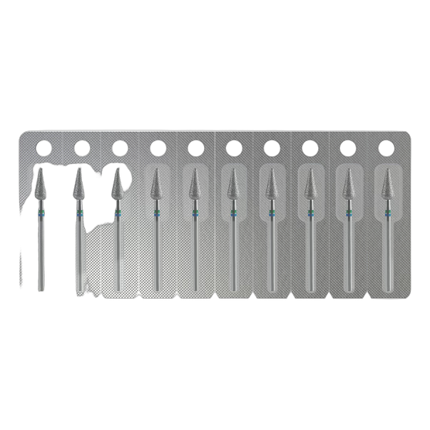 Otsik valmistatakse topelt-teemantpuru pealekandmise meetodil roostevabast meditsiinilisest terasest toorikule. Esmalt kantakse peale jämeda fraktsiooni terad, seejärel täidetakse vahed ühtlaselt standardsete kristallidega, katmata kogu tööpinna tihedalt. Galvaaniline protsess kinnitab terad niklikatte abil — ühendus on tugev ja vastupidav.