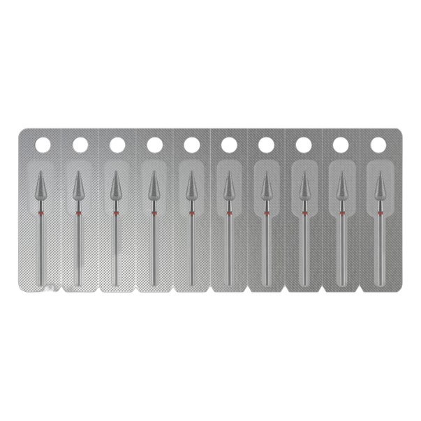 Punase märgistusega peene abrasiivsuusega pirn lihvib küüneplaate delikaatselt, töötleb külgvallisid ja küüneümbruse siinuseid. Terav kuju võimaldab kutiikulat õrnalt tõsta ja eemaldada, pterüügiumi eemaldada ning siinuseid avada. Pediküüris kasutatakse pragude ja kalluste töötlemiseks.