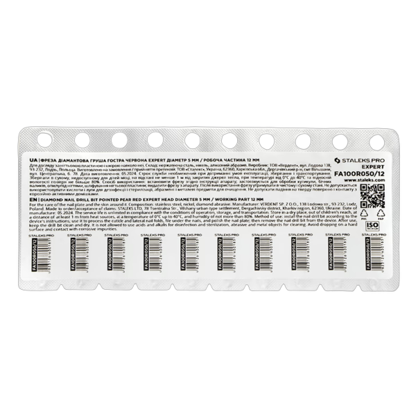 STALEKS PRO EXPERT punane terav pirnjas teemantfrees (5 x 12 mm) on peene abrasiivsuusega otsik naha delikaatseks töötlemiseks. Pirnjas terav vorm ühendab endas kera ja terava leegi eelised, võimaldades töötada raskesti ligipääsetavates kohtades, töödelda nahka ning lihvida küüneplaate vigastamisohtu. Sobib nii algajatele kui kogenud küünemeistritele.